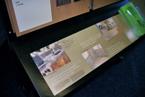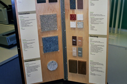 Contra Costa County's Green Building Materials Display Gallery The unit's text descriptions and samples give visitors the experience of seeing and touching different materials.
